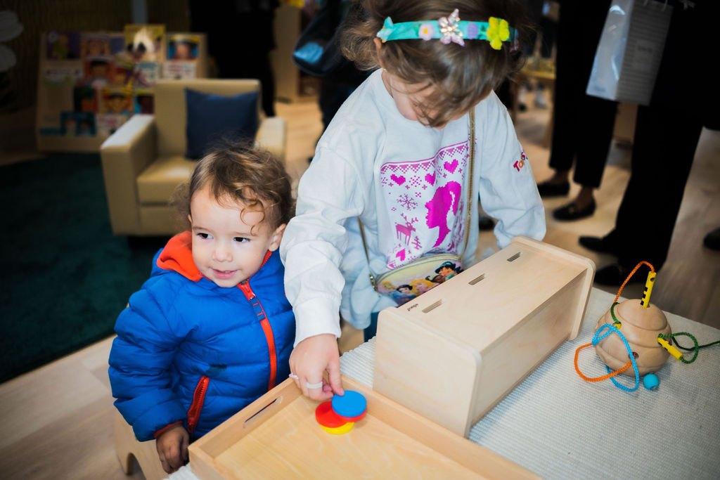 - Fine Motor Development: Our classroom is full of materials that support fine motor development, including puzzles, tweezers, nesting cups, and stacking toys. Inspired by Montessori principles, we offer real, child-sized tools that allow toddlers to engage with purpose and care, building strength, focus, and coordination.